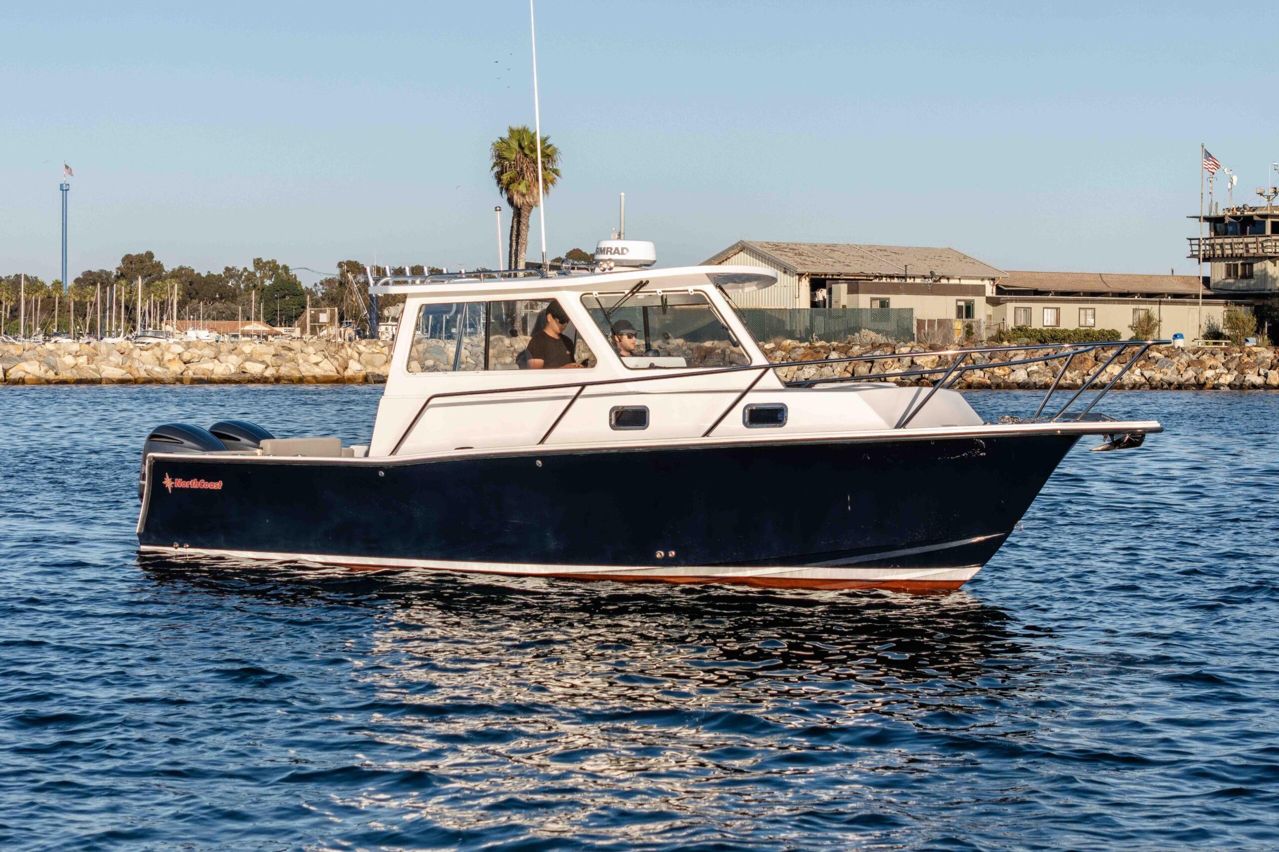 The NorthCoast 285HT has a fishing heritage your crew will appreciate each time you head out to sea. The 285HT offers a smooth, dry, and comfortable ride with rod holders, tackle boxes, fish boxes, live well, and all the latest electronics at the helm. Excellent 360 degree visibility with 6'2" headroom and L shaped seating complimented by high gunnels and classic shear lines. The NorthCoast pilothouse design is based on versatility, providing an exceptional blend of offshore performance and handling with a quality interior fit and finish. This 285HT has been well cared for and is now ready for the next coastal or offshore adventure.