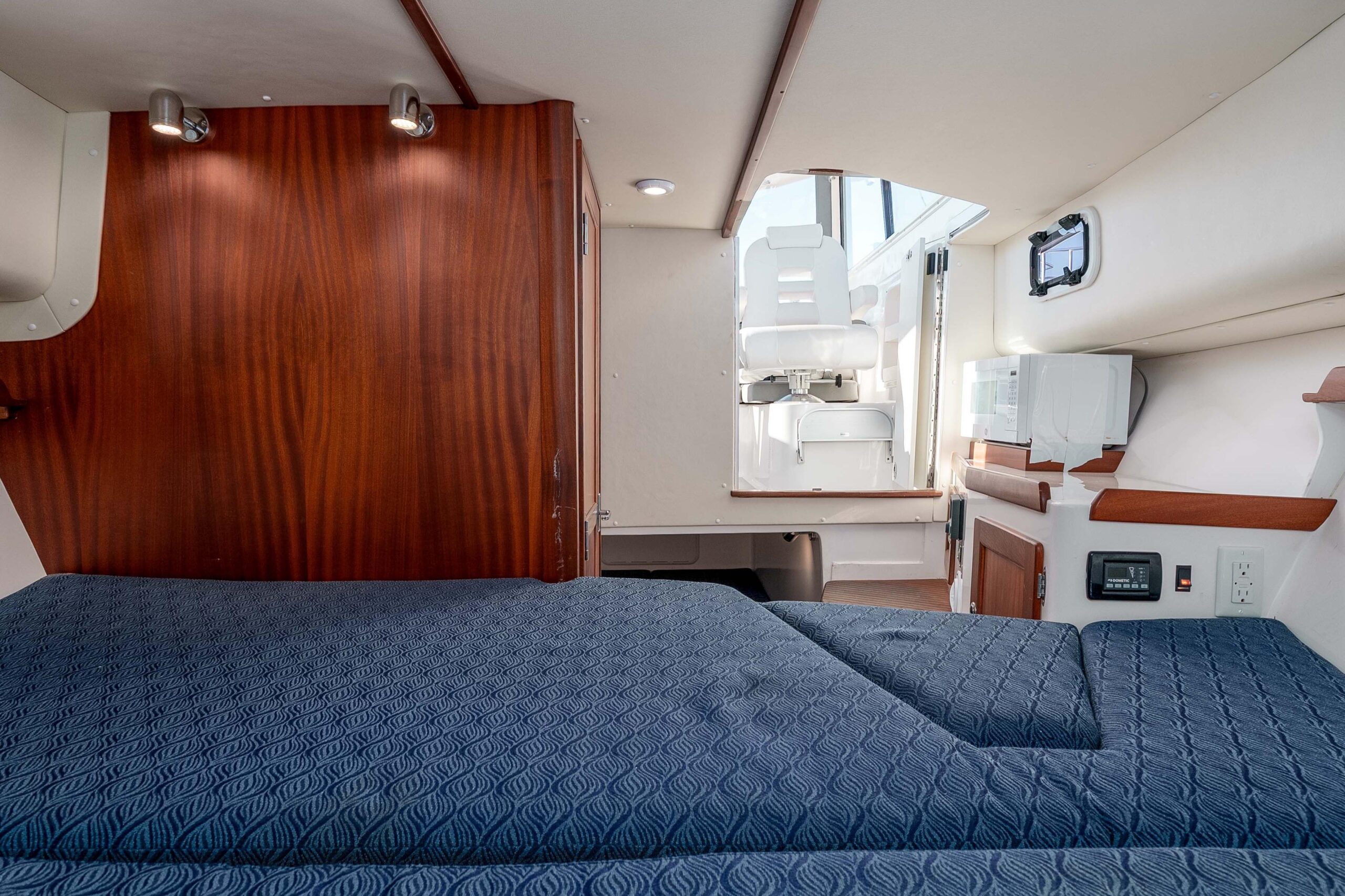 - Sleeps four adults (two in the V-berth and two in the aft berth)