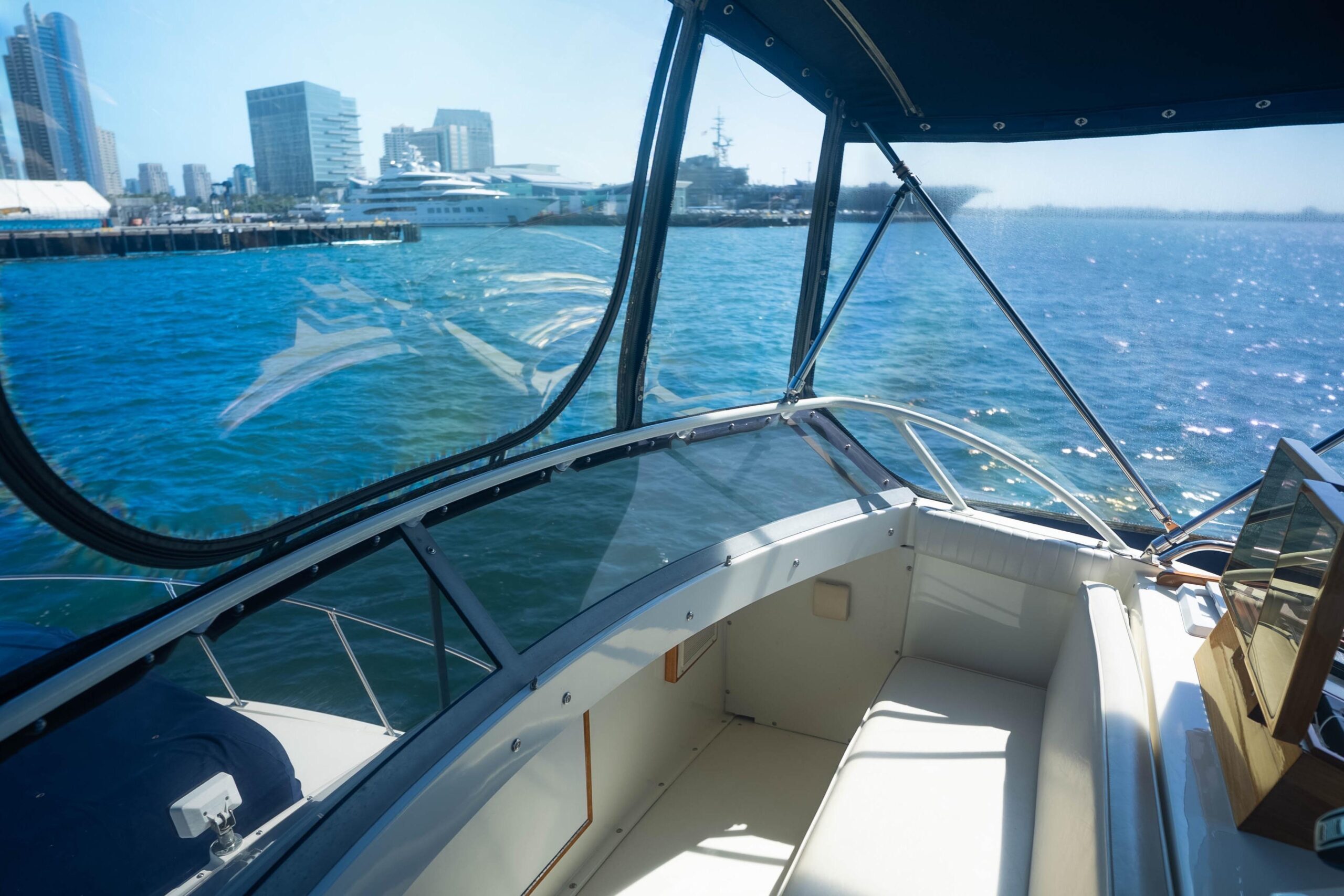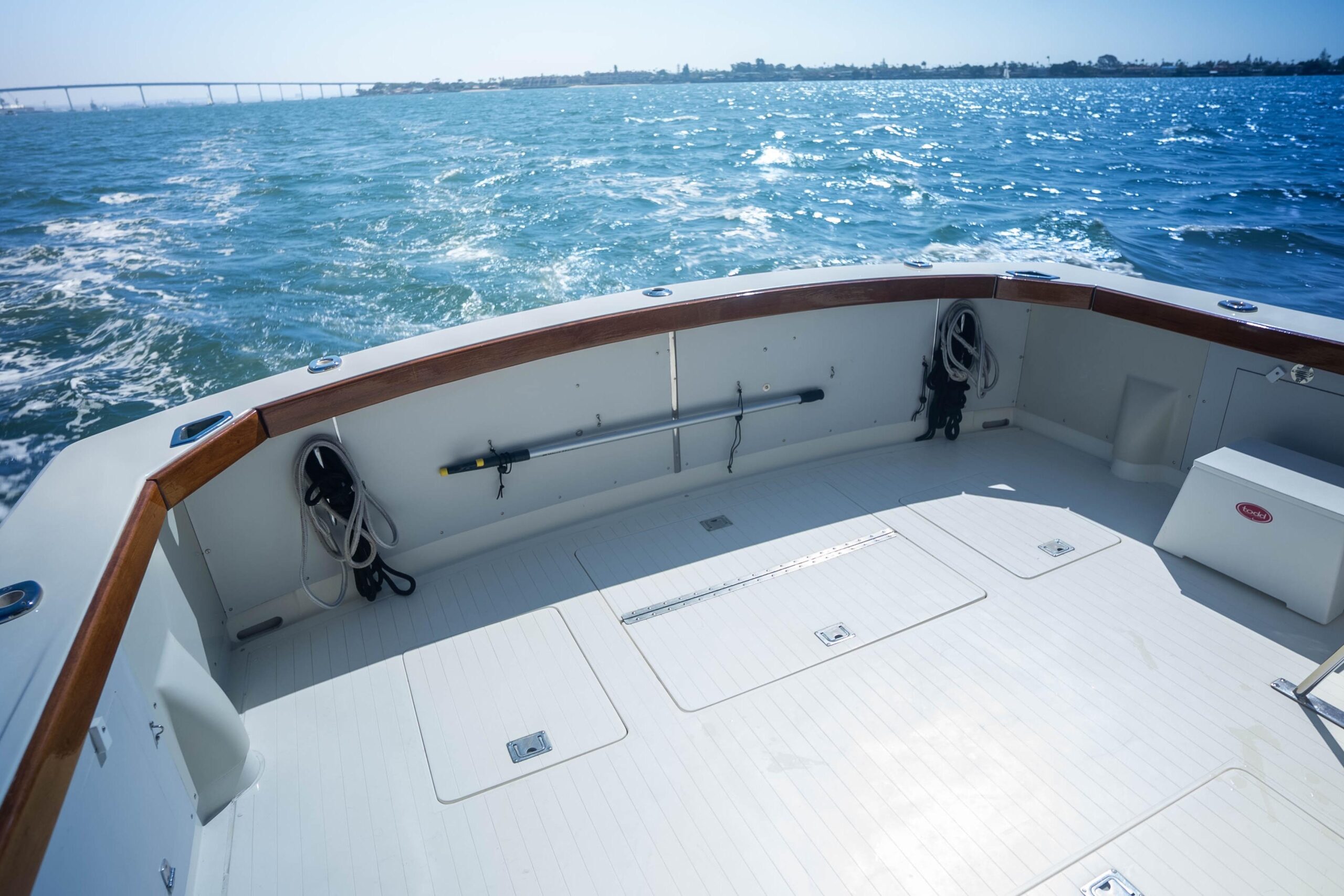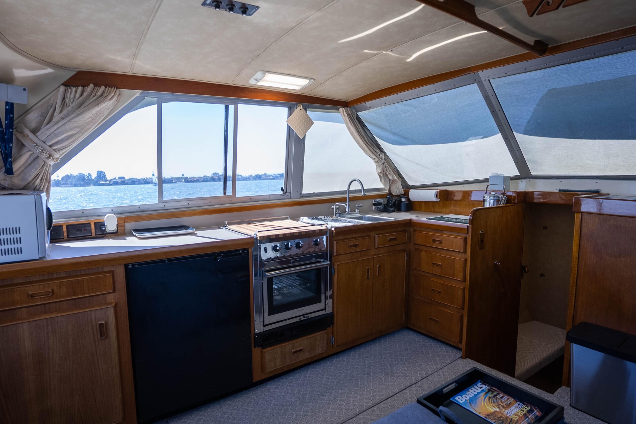 Introduced in 1970 and remaining in production for the next 15 years, only a handful of boats in her class approached the Bertram 35 Convertible in owner popularity. She was the recipient of many updates and modifications during her long production run, and used models remained in demand for many years after the last hull was delivered in 1986. While many owners enjoyed the Bertram 35 as a versatile family cruiser, sheu2019s most at home as a fishing boat where her large cockpit and precise handling qualities are most appreciated. Below, there are accommodations for four in the 35u2019s cozy interior where the galley is to port in the salon and the head has a separate stall shower. In 1981 the MK II model came out with an updated flybridge layout, and the following year the original vinyl-over-plywood cockpit sole was replaced with a fiberglass soleu2014a big improvement since the plywood tended to rot. In 1984 teak cabinets and trim replaced the original wood grain mica decor. 300hp Cats (23u201324 knots cruise) were among the most popular engines for the 35 in her era.