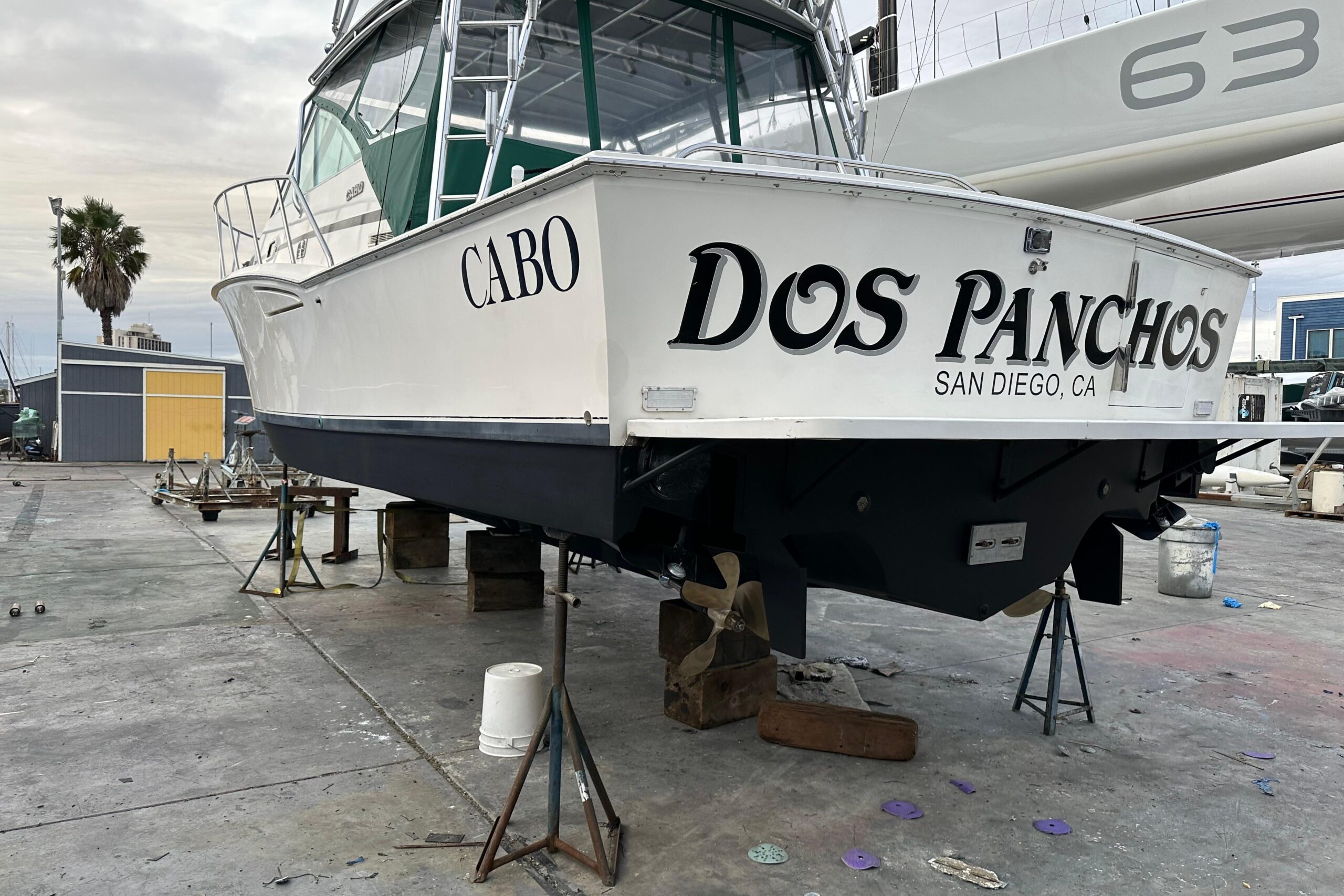 Sweet 35 Cabo Express.. well maintained by owner who is a maritime professional. New SIMRAD Electronics Suite at helm and tower. Fresh bottom paint , cutlass bearings and prop recondition 11/25. Dos Panchos combines top notch construction with unmatched fishability, she's a modern sport fishing classic. Uncluttered cockpit includes bait prep center, transom door and two in-deck fish boxes. The entire helm deck lifts for unobstructed engine and generator access. A great fishing boat in a compact package ..