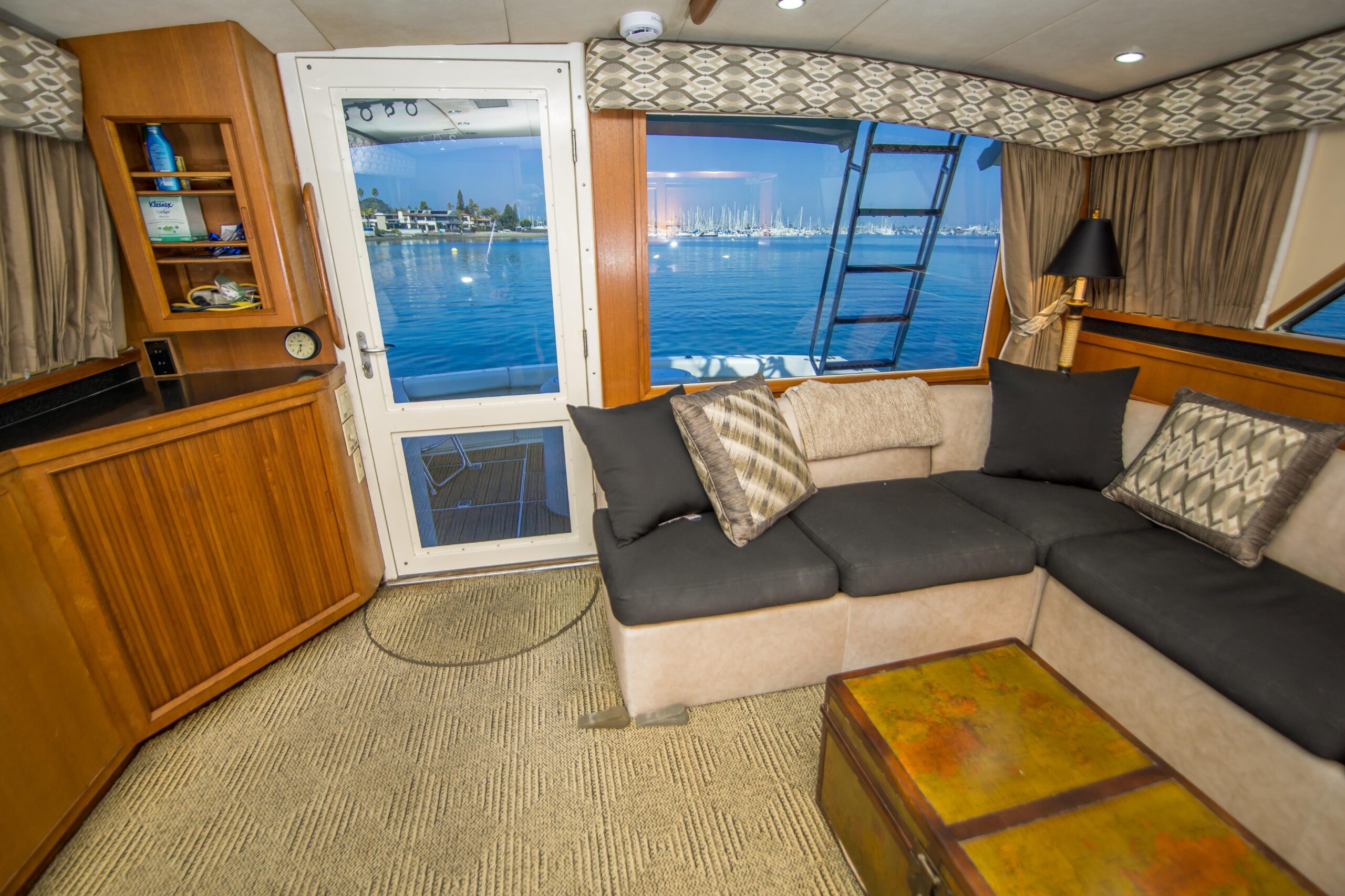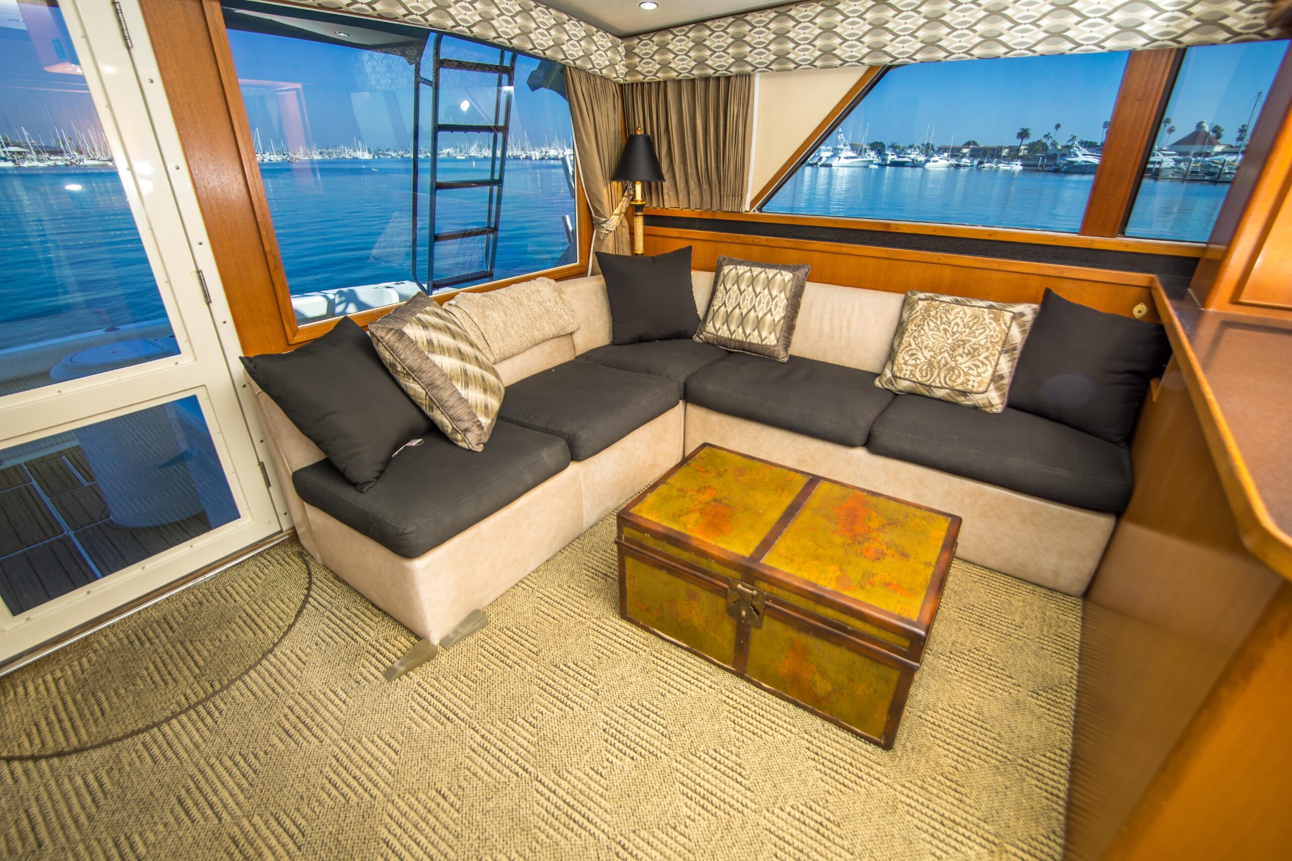 - New tackle storage in interior companion way